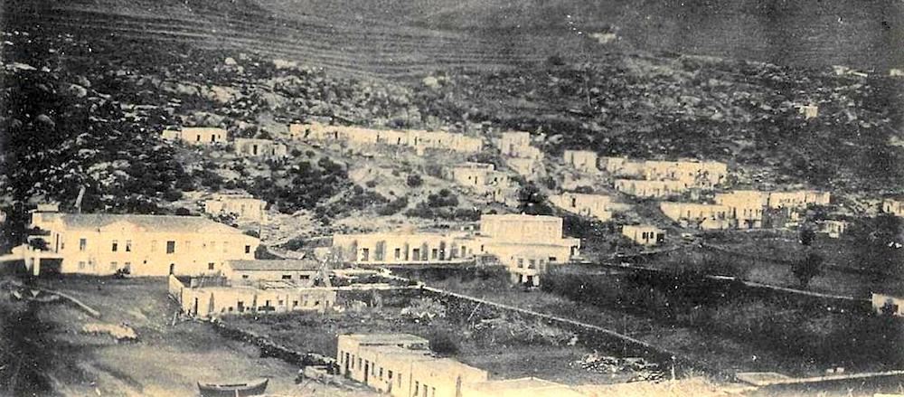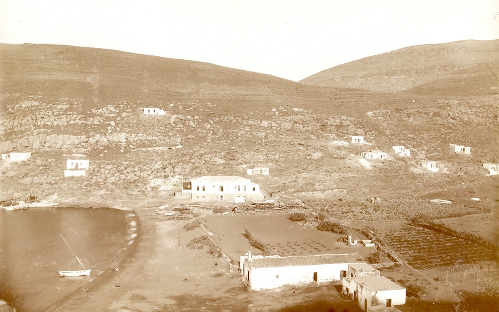 Η παραλία του Μεγάλου Λιβαδίου στα τέλη της δεκαετίας του 1880. Το διοικητήριο διακρίνεται στο βάθος.